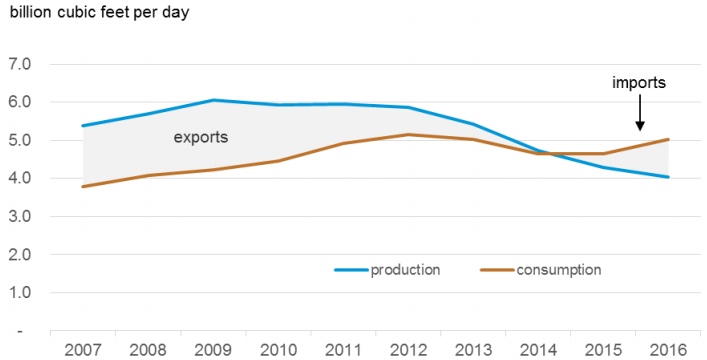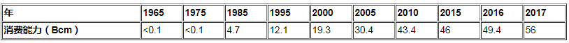 图16:埃及天然气产量,消费量,净出口量,净进口量(EIA,2018)