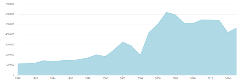 图14:埃及最终石油和石油产品消费量(IEA,2017)