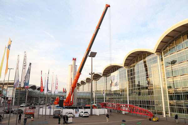 该展览将重达138.5吨,展示了具有成本效益的技术。与传统的起重机解决方案相比,爬升起重机更易于运输,所需空间更小。