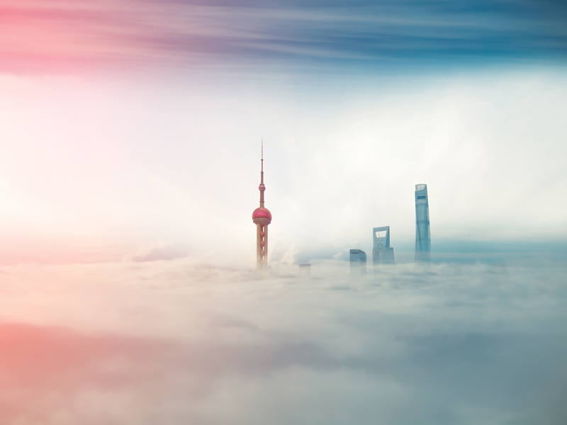 商业建筑沉浸在中国上海的雾中。尽管中国是世界上最大的温室气体排放国,但它现在正在引领绿色能源发展