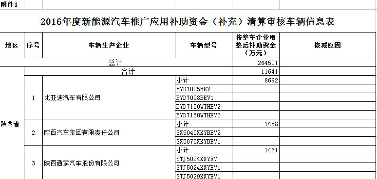 2016年度,新能源汽车补贴补充清算金额总计26.45亿元,陕西省、深圳市、浙江省的补充清算新能源汽车补贴分别为1.16亿、25.1亿、1811万。其中,深圳比亚迪、陕西比亚迪分别获得补充清算新能源汽车补贴25.1亿、8692万,占到了2016年补充清算的新能源汽车补贴总金额的98%。