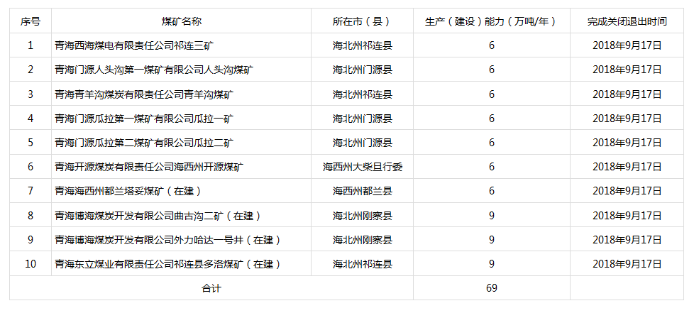 青海省2018年煤炭行业化解过剩产能煤矿名单