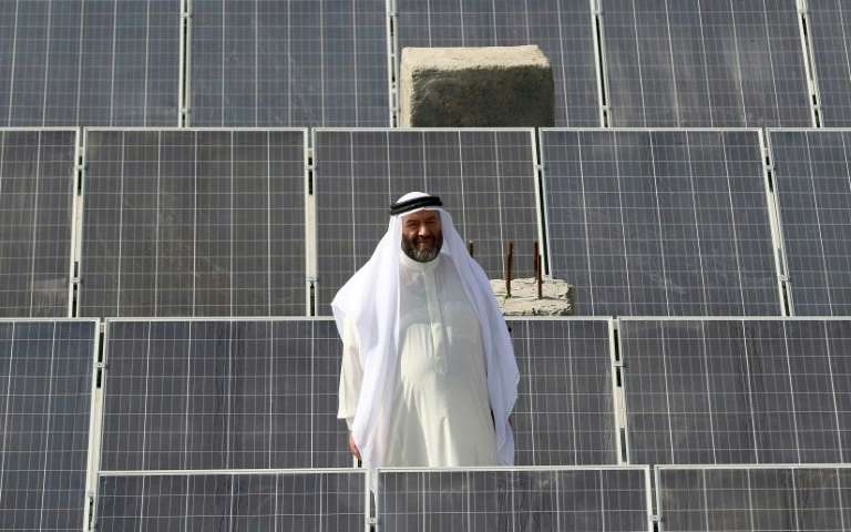 Sheikh Adnan Yahya站在Hamdan al-Qara清真寺前说,在安装面板之前,他每年需要支付高达13,000第纳尔(18,350美元,15,500欧元)的电费。