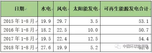 2018年1-8月,可再生能源发电投资额占全国电源工程完成投资额比重的52.6%,较上年同期降低1.8个百分点。