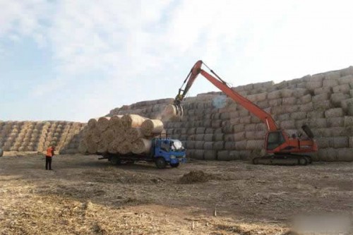 图为阜蒙县惠农生物质热电有限公司正在收购秸秆等燃料。