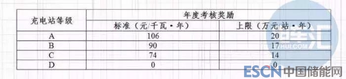 二是年度考核奖励,即在考核年度内对公用充电站的安全生产、维护管理、互联互通等管理情况进行考核评价,引导企业加强运维管理,鼓励社会公用充电设施发挥“持枪站岗”作用,为用户提供安全稳定的服务。根据考核评价结果,对考核评价最好的A级充电站给予106元/千瓦·年的奖励,奖励上限为20万元/站·年。
