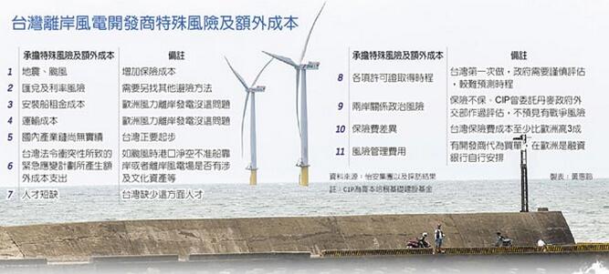 怡安集团认为,要执行台湾的离岸风电计画,开发商需要支付更高的保险成本。怡安保险集团技术长林彦硕表示,主要是台湾有地震及飓风的风险,这些是在欧洲离岸风电开发商没有的,除此之外,台湾还有其他特殊政治风险以及匯兑利率和法令等风险,都会增加整体开发成本。