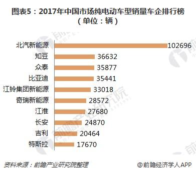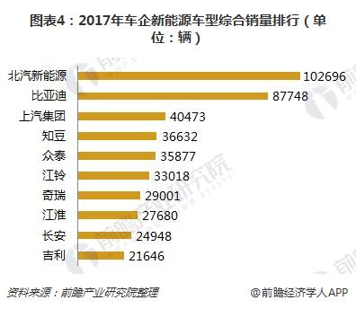 从各车企的纯电动车销量来分,北汽新能源的纯电动车销量最大,为102696辆,远远超过知豆、众泰甚至比亚迪等品牌的纯电动车销量。结合以上数据来看,北汽新能源在新能源汽车市场中占龙头地位。