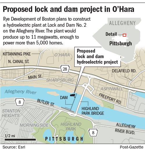 波士顿Rye Development公司的官员表示,他们正在为高地公园大桥下方的阿勒格尼河上的洛克斯和2号大坝的水力发电厂设计计划。