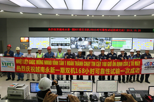 2018年10月20日越南当地时间10时,由中国南方电网公司投建的越南永新燃煤电厂一期BOT项目1号机组和2号机组,在分别完成单机168小时可靠性试验的基础上,顺利实现双机同时通过168小时可靠性试验。至此,永新项目两台620WM机组顺利实现“双机168”的高难度可靠性试验,为全厂转入商业运行奠定了坚实基础。