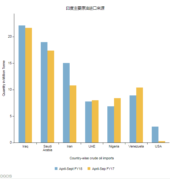 表明美国原油食欲增加,印度2018 - 19年度前六个月从美国进口的石油价格上涨10倍至3.03吨,而去年同期进口的原油为0.28吨。由于原油价格上涨和供应市场收紧,美国自2016年以来原油产量和出口均显着增加。