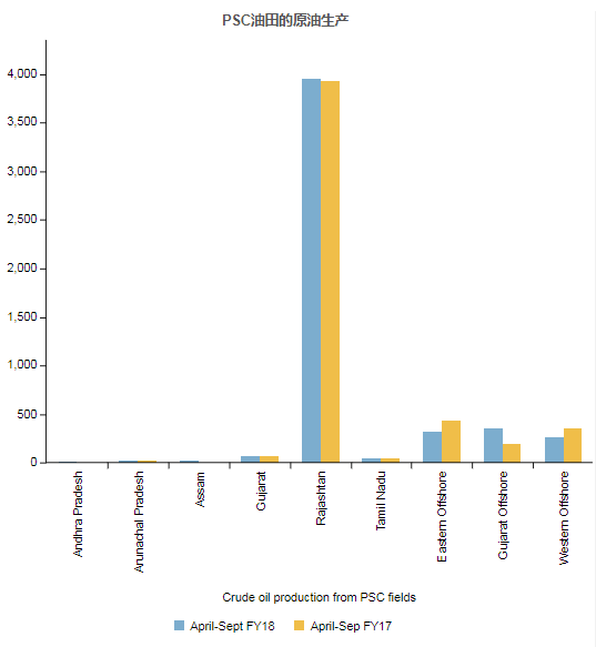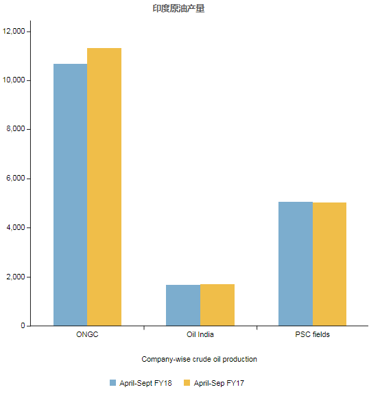 印度本财政年度前六个月(4月至9月)的累计原油产量下降3.42%至17,409.44 TMT,而去年同期产量为18025 TMT。