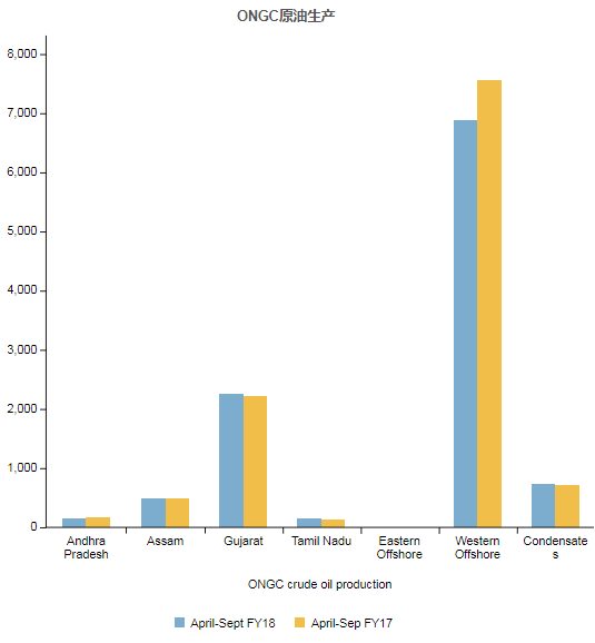 国家最大的石油和天然气生产商,石油和天然气公司(ONGC)的原油产量在9月份下降了7.21%至1,711.27 TMT,而去年同期的产量为1,844.25 TMT。