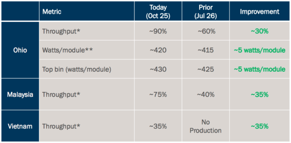 展望First Solar提前在线生产,并表示由于第二个越南工厂的进展快于预期,它将在2019年第一季度开始生产,而不是第二季度。