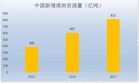 2017年,全国新发现矿产地109处,煤炭有8处;勘查新增资源量超过50亿吨煤田有3处。