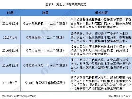 此外,2011年以来,国家先后印发了多份鼓励开展小堆研发及工程建设的政策文件。根据《能源技术创新“十三五”规划》,开展小型堆的示范堆建设已被列入“十三五”的重点内容;《2018年能源工作指导意见》也强调了要深入推进高温气冷堆和模块化小型堆先进核电技术的试验示范工程建设。