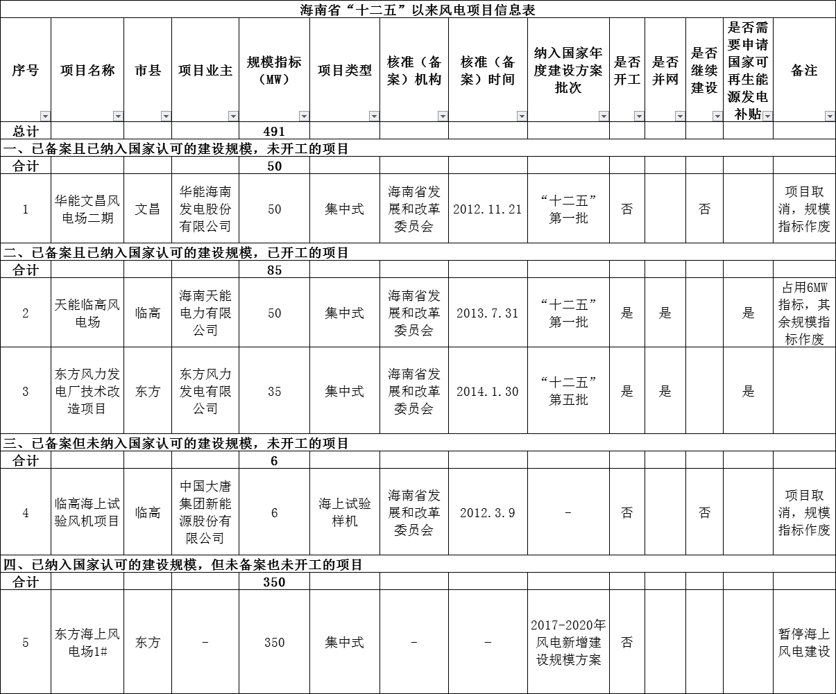 近日,海南省根据《国家能源局综合司关于梳理“十二五”以来风电、光伏发电项目信息的通知》(国能综函新能〔2018〕367号)要求,将省内“十二五”以来风电、光伏发电项目情况进行公示。