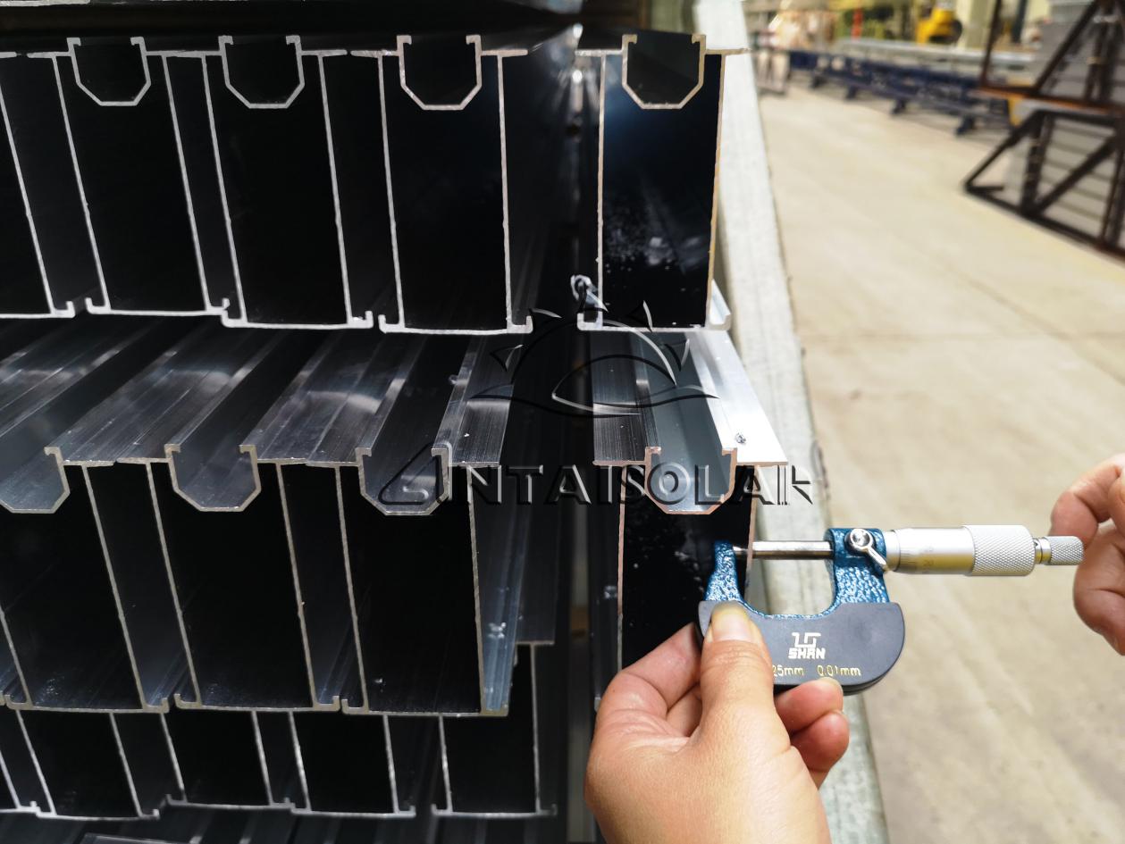 工厂车间——检验截面的各个尺寸,壁厚偏差,扭拧度,弯曲度,角度偏差,表面质量等来测试产品是否合格
