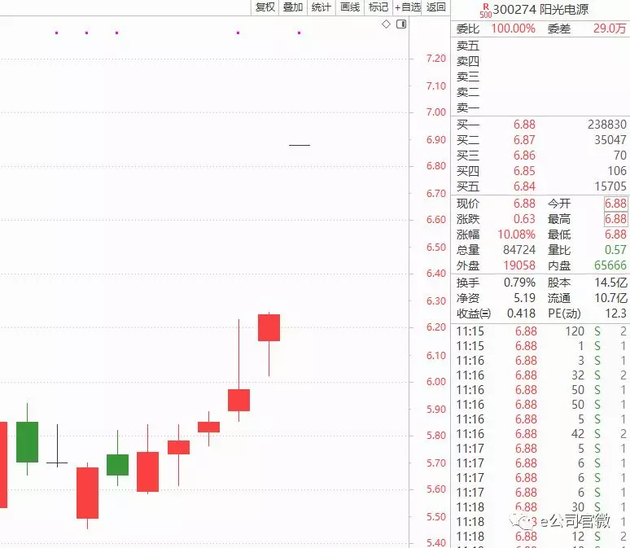 11月5日早盘,光伏板块延续涨势,隆基股份(601012)、阳光电源(300274)、钱江生化(600796)、林洋能源(601222)、通威股份(600438)等多只个股涨停。