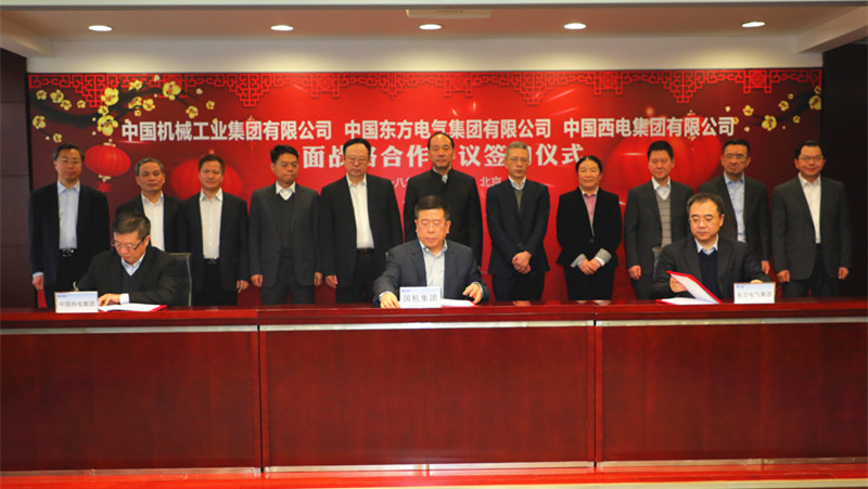 2月11日,国机集团、中国东方电气集团、中国西电集团全面战略合作协议签约仪式在集团总部举行。国机集团董事长、党委副书记任洪斌;东方电气集团党组书记、董事长邹磊;中国西电集团董事长、党委书记、总经理,中国西电电气股份有限公司董事长、党委书记张雅林代表三方签署战略合作协议并致辞。原机械部部长何光远,原机电部副部长唐仲文,原中纪委驻机械部纪检组长、老部长支部书记孙祖梅,原机械部副部长陆燕荪、沈烈初,原机械部副部长、中国银行副行长孙昌基,中国机械企业管理协会理事长孙伯淮等机械工业老领导出席签约仪式。国机集团、东方电气集团、中国西电集团领导班子成员见证签约。集团党委书记、副董事长石柯主持签约仪式。