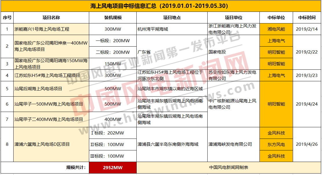 关注商机:上半年这8个海上风电项目开标,规模共计2952MW