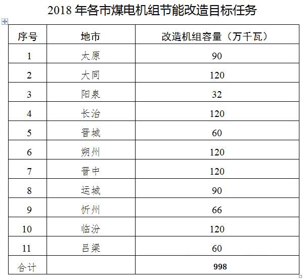 日前,山西省印发《2018年各市燃煤机组节能改造目标任务》。全文如下: