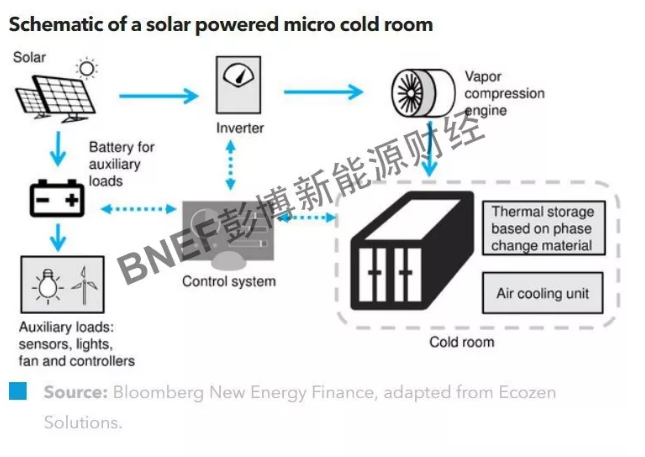 冷藏需求开始不断为偏远地区的微电网创造新的机会,有望为微电网带来重要的潜在收入。由于缺乏冷链基础设施,许多新兴市场中的农产品会在收获后面临严重损失,仅印度一国在这方面的损失就超过约140亿美元。在冷藏需求无法满足、电力供应不足,及光伏电力具备价格优势的大环境下,一些下游光伏运营商可能会迎来新的机会。