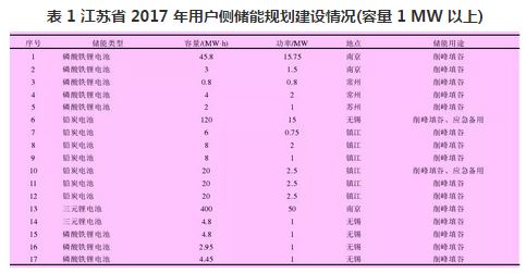 此外,在用户侧规划储能设备,不存在布点问题;并且因为我国目前实行分时电价和针对工商业用户的两部制电价政策,所以用户侧分布式储能的引入多从经济性角度出发,以减少电费或最大化收益为目标开展储能配置研究。江苏 2017年用户侧分布式储能规划建设情况如表 1 所示。从表 1可以看出,当前用户储能的建设目标还是以需求响应(价差套利)和提高供电可靠性为主,对电网的支撑作用主要是削峰填谷。