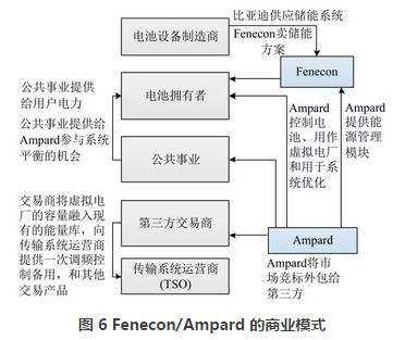 Fenecon/Ampard 开展的虚拟电厂模式,将Ampard 的能源管理模块与 Pro Hybrid 储能系统集成起来,使其可以在用户侧被用作虚拟电厂。用户为了增加自发自用而购买储能系统,Ampard 利用他们的能源管理系统(Ampard Energy Manager)将这些系统管理起来,为这些储能系统增加虚拟电厂的功能提供一次调频控制和备用等服务。Fenecon/Ampard 的商业模式见图6。