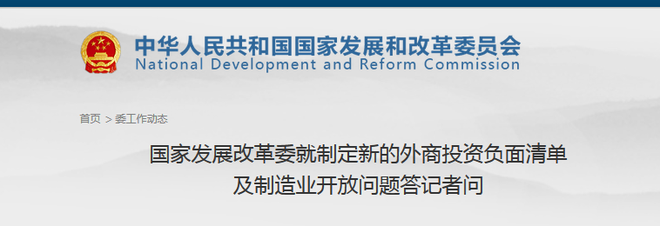 发改委指出,汽车行业将分类型实行过渡期开放,2018年取消专用车、新能源汽车外资股比限制。