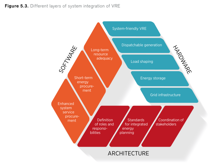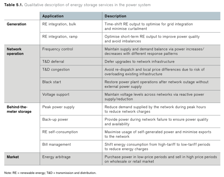 报告中说明提高系统整体灵活性的资源可分为四大类:可调度发电机、电网基础设施、荷载成形和储能。电储能指所有接受电能并仍以为电能返回的技术。套利的机会(利用价差获利的做法)在过去40年中推动了储能的部署,尤其是抽水蓄能。然而,电力储能技术可以提供多种服务,从快速频率响应到季节性大容量储能,有助于应对与可再生能源的可变性有关的新挑战。