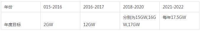 2014年1月,印度总理纳伦德拉•莫迪公布了太阳能振兴计划:到2022年,印度要实现可再生能源发电总量175GW ,其中太阳能装机容量100GW(40GW太阳能屋顶发电项目和60GW大中型太阳能并网项目)。总投资额约8000~10000亿元。目前印度的太阳能装机容量刚刚突破10GW,而为了实现2022年的目标,印度必须极大加快太阳能建设的步伐,每年平均新增装机量要达到15GW。