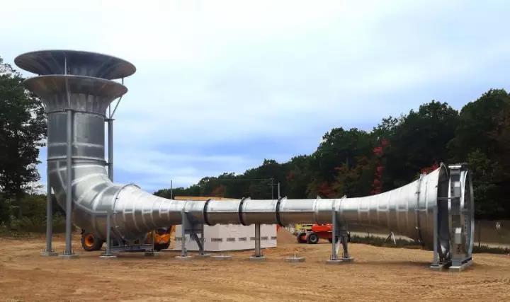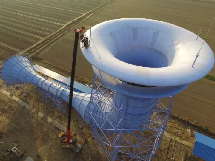 听起来很厉害的样子,但是原理却很简单:位于系统最上部的是集风口,就像一个朝天大喇叭,可以收集来自四面八方的风,不管是微风,还是90km风速的高风都可以穿过集风口进入系统内部,当遇到突然变窄的管道时,高速流动的风开始聚集并加速,最终推动涡轮机将风能转化为电能,尾部的扩散器再把风重归大自然。