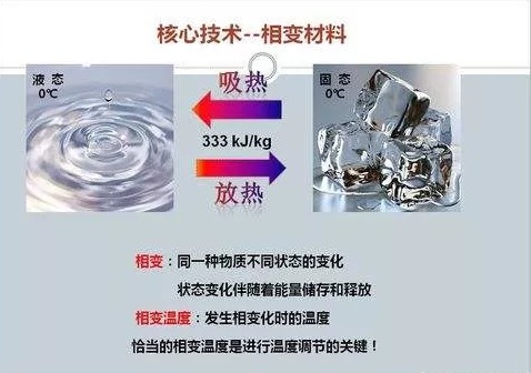 使用相变材料作为热源的原理很简单,比如冰块从固态变为液态水的过程中,就需要吸收一定的热量。这也是在某个异常温暖的日子,雪也不会突然融化;以及为什么放在冰箱里的冰块,比不锈钢方块更能冷却饮料的原因之一。