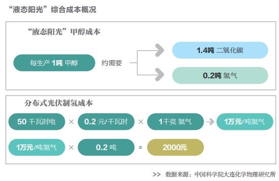 “液态阳光”甲醇技术的基本原理是,先通过太阳能等可再生能源分解水(光解水和电解水)制造“绿氢”,然后利用“绿氢”转化二氧化碳,生产出甲醇。此技术在原理上“道法自然”,如同光合作用,基础研究已经取得突破,我国已经成功实现千吨级规模工业化示范工程。该技术具有全部知识产权,且工业化技术全部国产化。