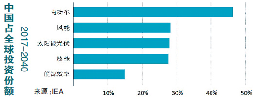 2016年,我国是全球最大的能源投资国,占全球能源投资总额的21%。随着对燃煤电厂投资的下降,我国境内能源投资主要包括低碳电力、电网建设以及能效提升。预计截至2040年,中国将在能源领域投资共计64000亿美元,电力行业尤其是低碳电力和电网建设,将占投资总额的三分之二以上,能效投资也将总计超过20000亿美元。