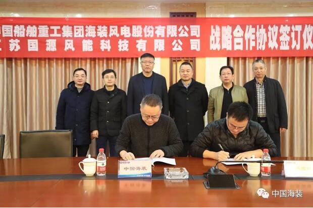 1月25日,中国海装与江苏国源风能科技有限公司举行了战略合作签约仪式。在中国海装董事长孙建中、江苏国源董事长张云龙的见证下,中国海装副总经理肖帅和江苏国源风能科技有限公司总经理林均签订了战略合作协议。未来双方将在风电场开发、风电机组配套等领域开展战略合作。