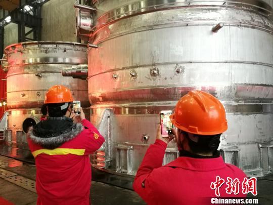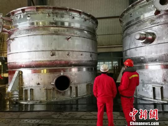 国际热核聚变实验蒸汽冷凝罐正准备封装运往法国。 钟升 摄