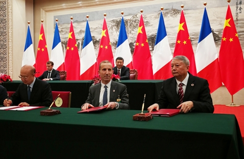 2018年1月9日,人民大会堂,在中国国家主席习近平和首次访华的法国总统马克龙共同见证下,中核集团董事长王寿君和法国新阿海珐集团签署相关协议备忘录,与法国法马通公司签署全球战略合作协议。这两份文件的签署是落实《中法两国深化民用核能合作的联合声明》的具体举措,将开启中法核能合作新纪元,进一步推动中法两国乃至全球核能未来发展。