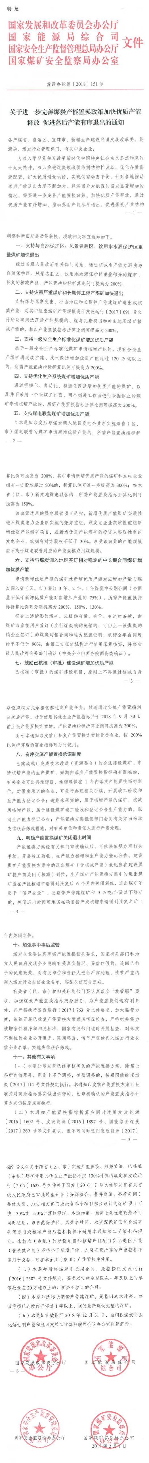 四部门:完善煤炭产能置换政策 加快优质产能释放