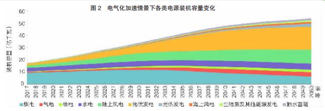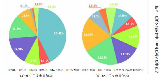 陆上风电、光伏发电将是未来发展速度最快的电源,2050年两者装机占比将超过50%,发电量占比将达到40%左右。为解决风光大规模发展带来的电力电量平衡与调峰问题,气电、水电、核电等并不会因风电、太阳能发电更具成本优势而停止发展,但分别受到价格、资源、站址的限制,增长空间有限;煤电完成角色转换后将继续发挥重要作用,各类电源呈现协调发展态势。