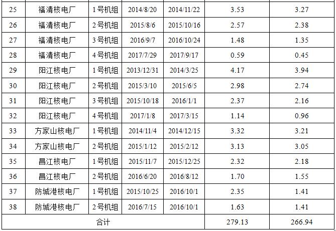 1.因暂时缺少机组并网和商运的精确时间,故起始时间以当日0:00:00计算,结束时间以当日24:00:00计算。