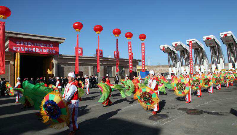 3月2日,神东煤炭集团上湾煤矿2号辅运平硐工业广场礼炮齐鸣、秧歌欢舞。百套巨型支架环绕周边,如一位位钢铁战士般擎天立地,铁甲巨兽般的支架搬运车缓缓驶入井口,标志着世界首套8.8米超大采高综采智能设备开始入井安装。