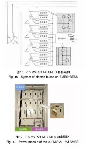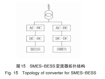 风力发电存在不连续、不稳定的特点,直接并网会造成电压闪变、功率频率波动等不良影响。同时,风电场必须具备低电压穿越(lowvoltageridethrough,LVRT)能力,以消除潜在的安全隐患。研究表明,SMES-BESS在稳定电压波动、平抑风电功率波动及提高低电压穿越能力方面具有重要作用。图15为SMES-BESS变流器的拓扑结构。