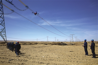 “无人机准备就绪,可以起飞……”3月9日,在我省白银市境内一处荒野,一架红色电动无人机缓缓升起,开始沿着这里经过的±800千伏天中直流2210号塔身平稳飞行、精准查找隐患。在现场工作的国网甘肃检修公司输电检修中心主任成保告诉记者:“现在随着高科技的应用,我们的巡线变成了‘无人机+望远镜+步行’,传统方式与高科技的结合,让日常的巡线查隐患工作更完善。”