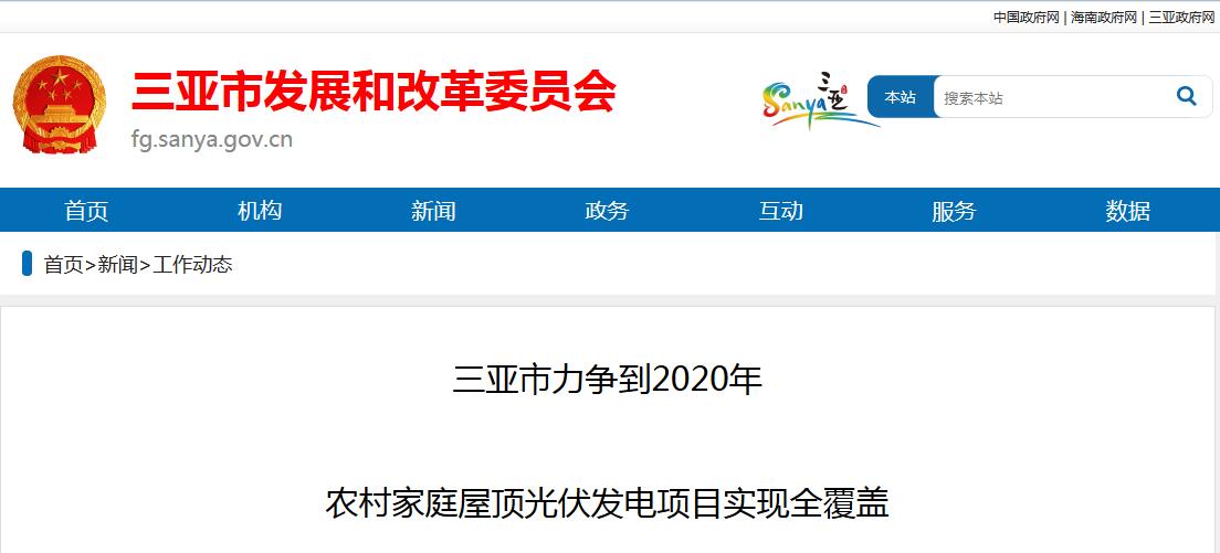 为进一步优化我市能源利用结构,大力发展清洁能源,推动我市农村家庭屋顶光伏发电项目建设,促进农民增收,我市正式印发了《三亚市推进农村家庭屋顶光伏项目建设实施方案》,力争到2020年,实现92个村民委员会及已完成属地化管理的农场(居)符合建设条件的居民家庭屋顶光伏发电项目建设全覆盖。