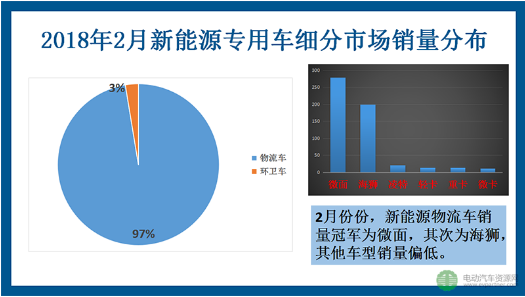 过数据整理发现,2018年2月新能源专用车共销售541辆,同比增长80.78%,环比增长-900%。从往期的销量来看,在前几月份的暴增后,2月份的销量走向低谷。