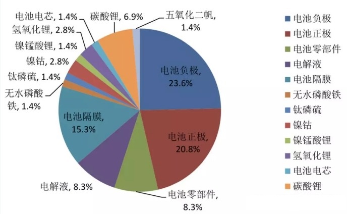 在电池材料项目中与原材料有关的项目占到了项目总数的35.8%,其中电池负极、电池正极和电池隔膜项目占比较高。另外,碳酸锂、无水硫酸铁、镍钴、镍锰酸锂、氢氧化锂、五氧化二帆等电池原料项目也有所涉及。