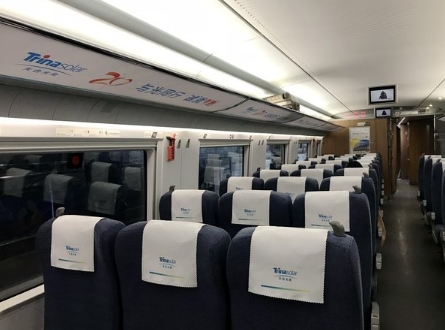 专列,“天合光能号”的车身、内外车门、行李架、头巾和小桌板等位置均印有天合光能企业标识和“与光同行,‘诚’就梦想”的口号,以及天合光能在家用光伏、商用光伏、能源互联网等领域的业务展示。