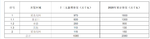 河北省“十三五”风电和光伏的开发建设布局如下: